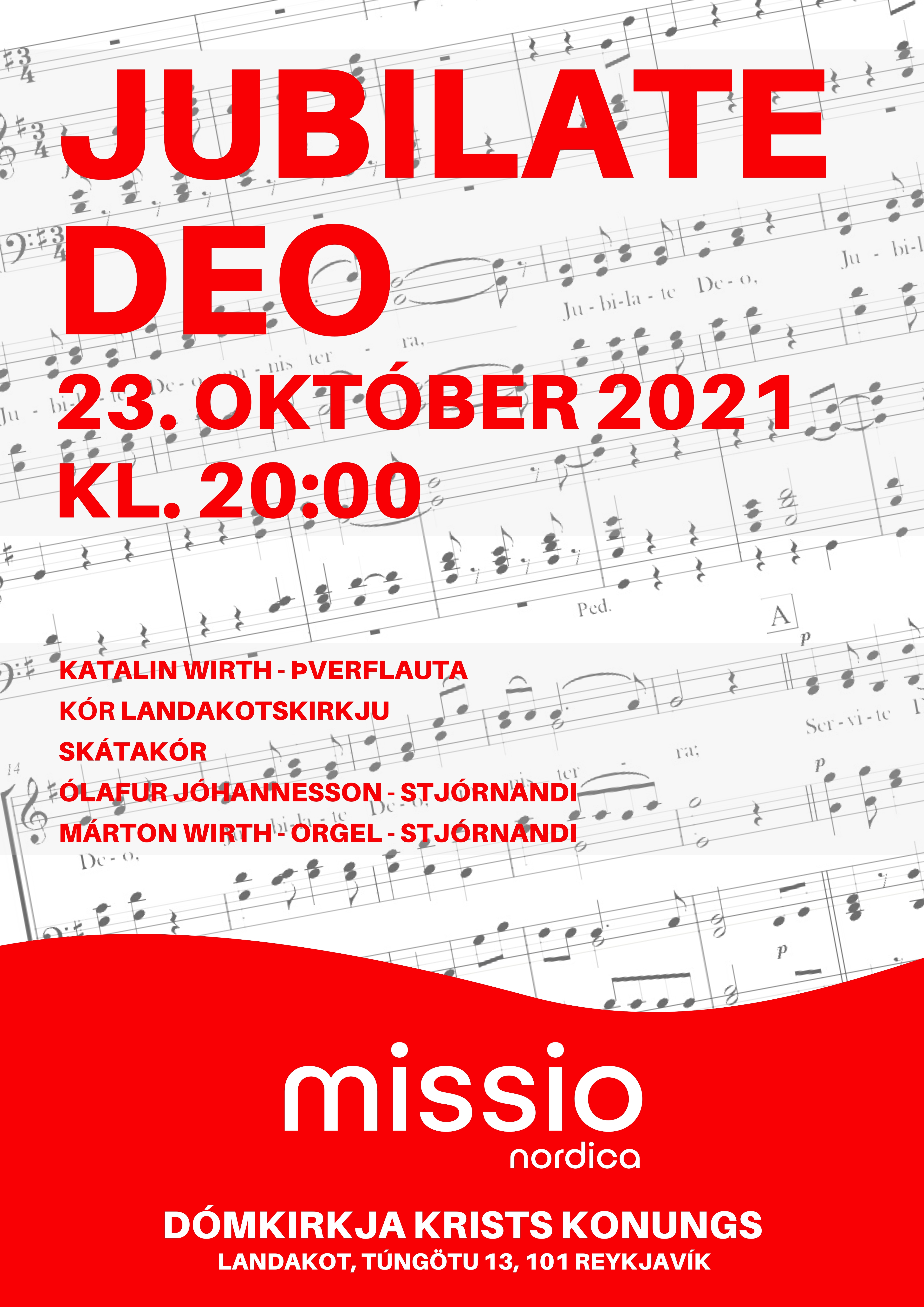 Missio Nordica would like to invite you to the Jubilate Deo event on October 23, 2021 at 20.00 in the Cathedral of Christ the King in Reykjavík. We will pray together for the missionary work of the Church and listen to the singing of our choir and others.